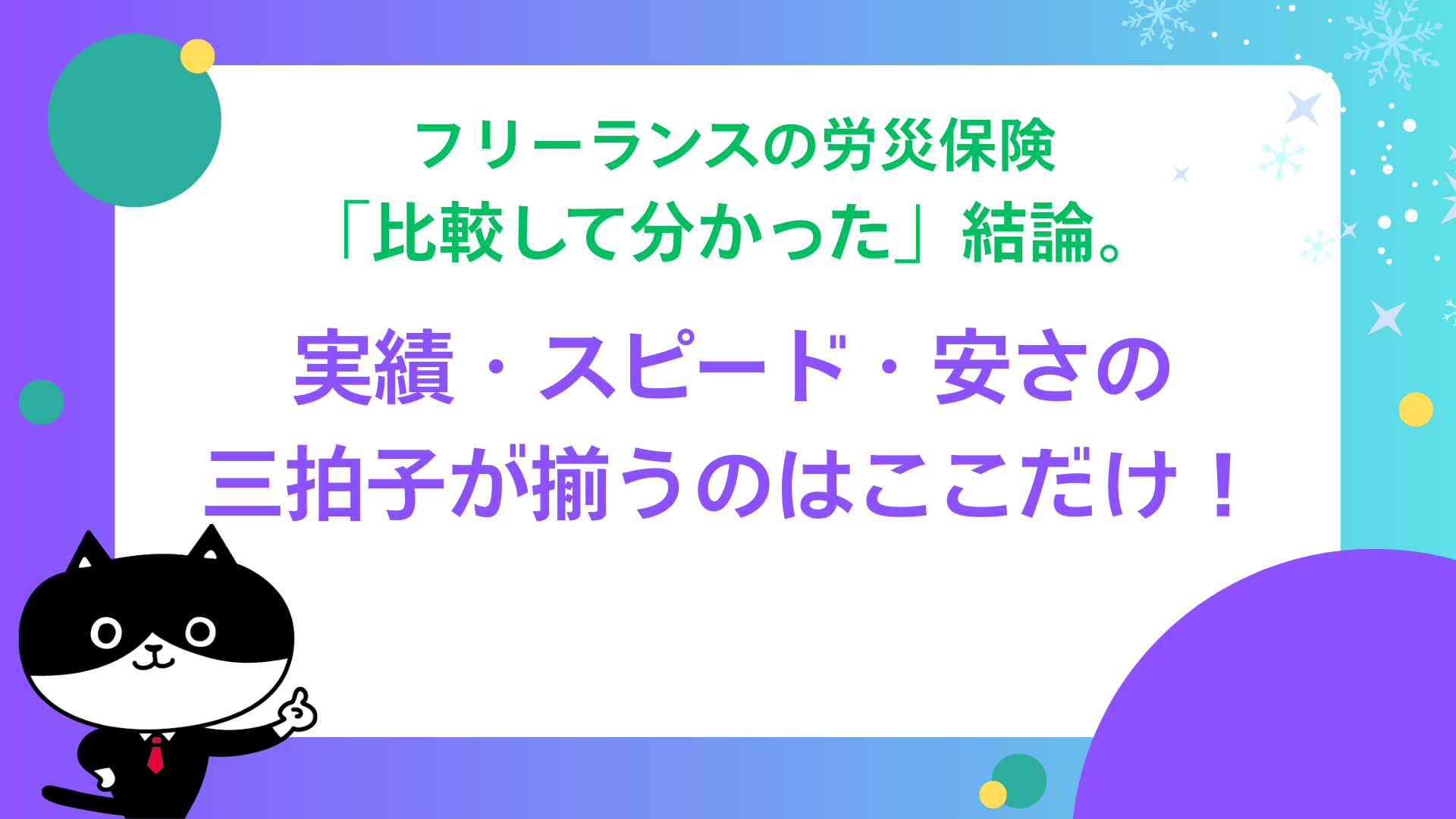 フリーランスの労災保険「比較して分かった」結論。実績・スピード・安さの三拍子が揃うのはここだけ!