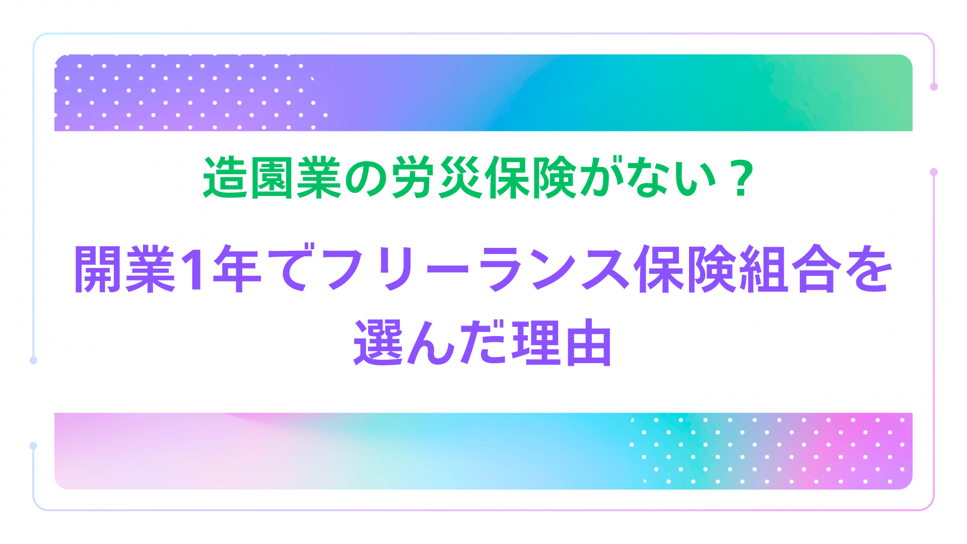 個人で造園業を営む皆さまにとって、屋外での作業は常に怪我のリスクと隣り合わせですよね。今回は、加入先が見つからず悩んでいた造園フリーランスの方が、当組合に出会うまでのストーリーをお届けします。