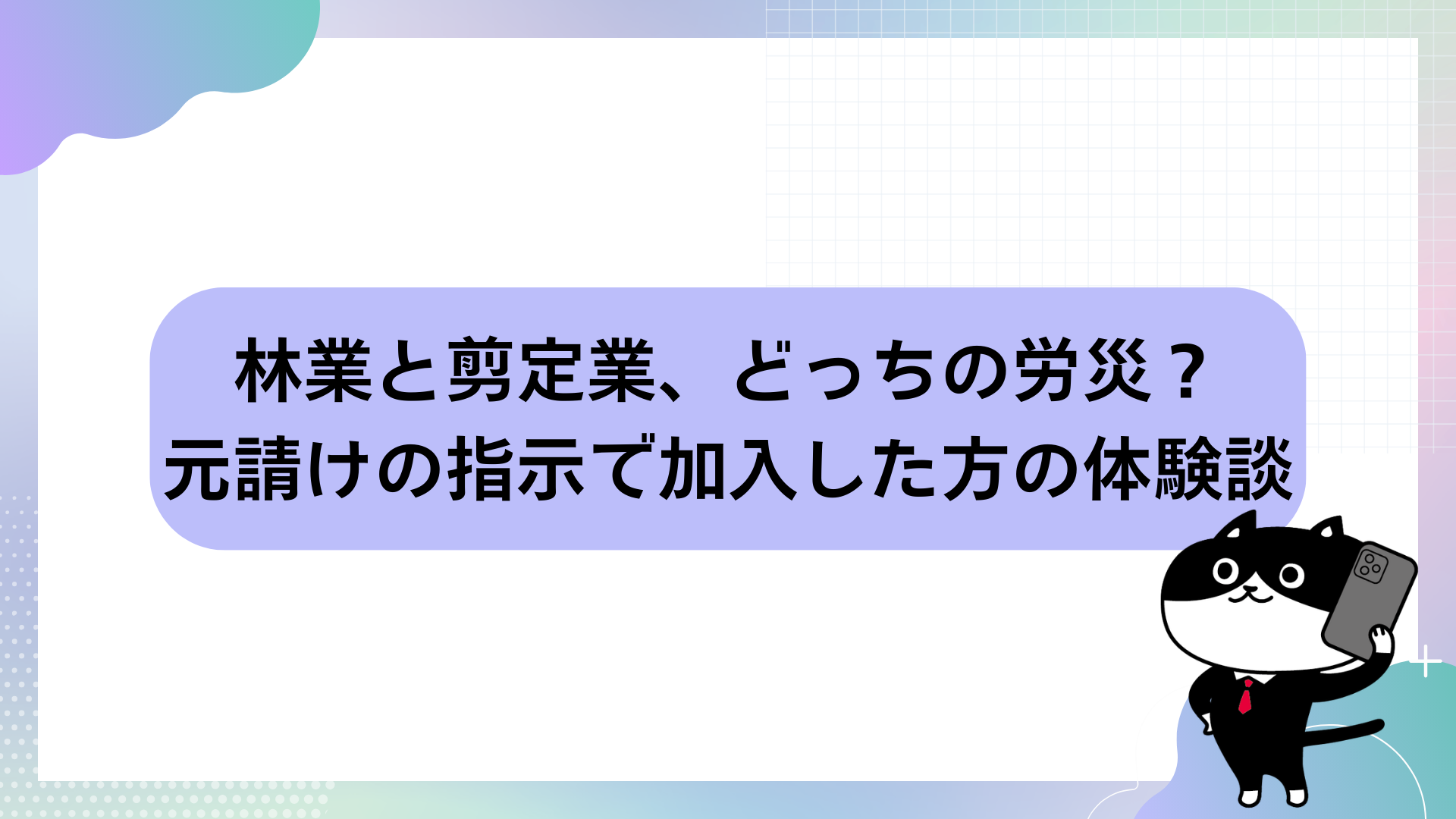 その方は「山での伐採(林業)」と「お庭の手入れ(剪定)」の両方を行っていたため、どちらの保険が適正なのか、あるいは両方必要なのかという点に不安を感じていらっしゃいました。