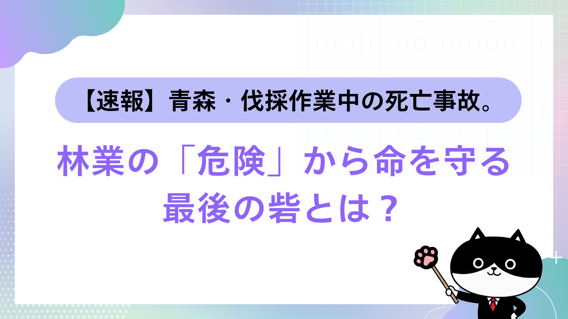 【速報】青森・伐採作業中の死亡事故。林業の「危険」から命を守る最後の砦とは?