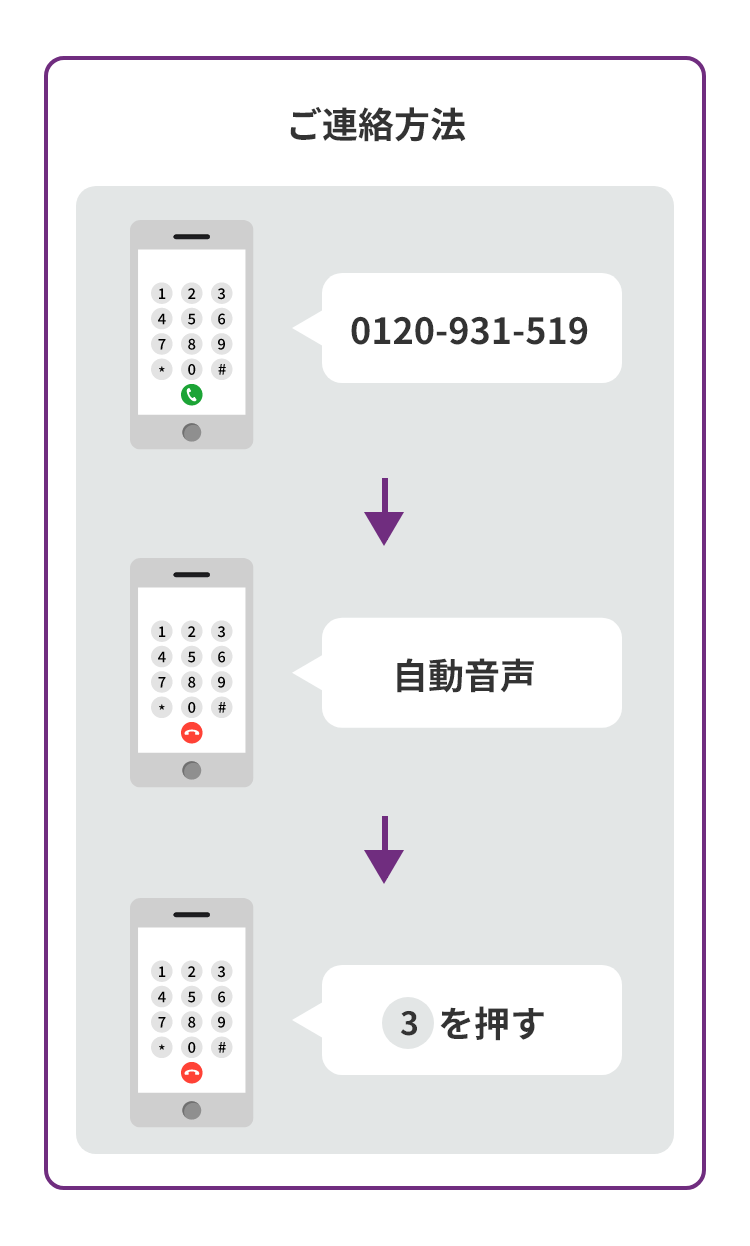 2025年12月1日(月)以降、新電話番号(0120-931-519)にお電話いただくと、自動音声のアナウンスが流れます。